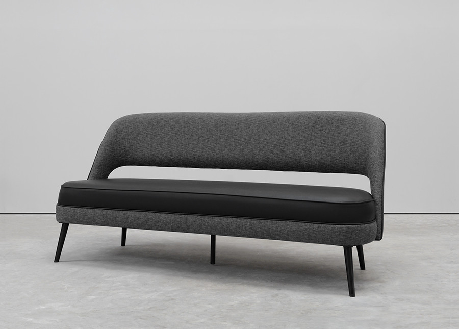 Sofa made of solid beech wood and high-density polyurethane foam. Available in all wood finishes. Optional golden caps.
